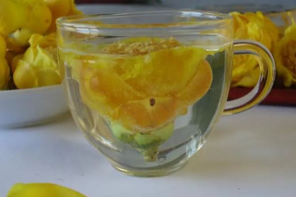 Pha trà hoa trà vàng: Mỗi lần lấy 2-3 bông hoa trà vàng, thêm 200ml nước sôi, pha với nước sôi. Để hoa ngâm trong nước 1 phút, lúc này bạn sẽ ngửi thấy mùi thơm nhẹ. Có thể ủ nhiều lần cho đến khi nước nhạt và không màu.