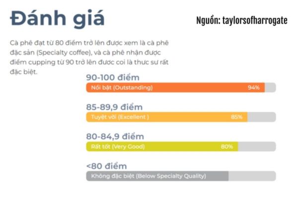 Trên thang điểm 100, người ta chia thành các cấp bậc của cà phê đặc sản. Bao gồm: