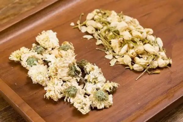 Hoa nhài có tác dụng thanh nhiệt, giải độc, điều hòa khí huyết, làm dịu thần kinh, gây thiếu máu và mất kinh. Phụ nữ nên uống nhiều. Trà hoa cúc có tác dụng thanh nhiệt, giải nhiệt, giải nhiệt mùa hè. Trà hoa cúc là vị thuốc tốt nhất có tác dụng giảm hỏa, như mụn trứng cá, viêm họng, phong nhiệt ngoại sinh, đau đầu, loét miệng do khô miệng.