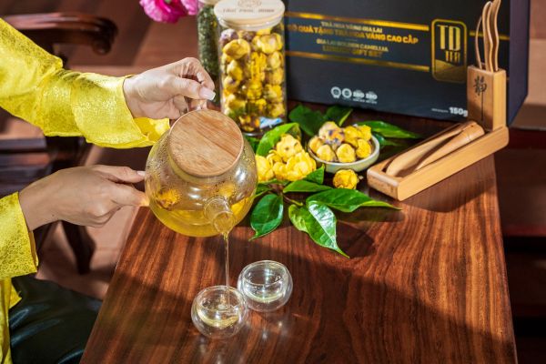Bước 3: Thưởng thức. Sau khoảng 5-6 tháng ngâm là bạn đã có thể thưởng thức rượu lá trà hoa vàng. Tuy nhiên cần chú ý đến liều lượng sử dụng hàng ngày, thường là 2 chén nhỏ.