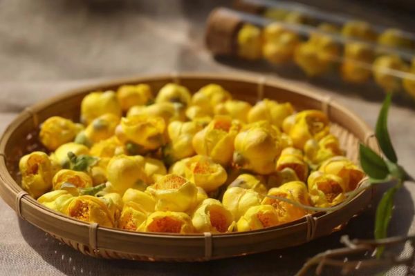 Với đặc tính dược học cao, trà hoa vàng quý hiếm được chế biến thành nhiều loại sản phẩm chăm sóc sức khỏe khác nhau. Đặc biệt, rượu trà hoa vàng là sản phẩm được sử dụng phổ biến chỉ sau trà. Rượu trà hoa vàng được tạo ra bằng cách ngâm đồng thời rượu gạo và các thành phần của trà hoa vàng. Qua đó, trà hoa vàng chuyển hóa hương vị, mùi thơm và thành phần dinh dưỡng vào trong rượu.