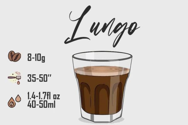 Lungo Espresso là loại Espresso cho ra nhiều lượng nước cà phê chiết xuất nhất. Tỷ lệ pha Lungo Espresso thông thường là 1:3 đến 1:4. Thời gian pha Espresso theo phong cách lungo cũng kéo dài hơn và có thể lên tới tận 1 phút. Vì thế, Lungo Espresso còn được gọi là “long shot”.